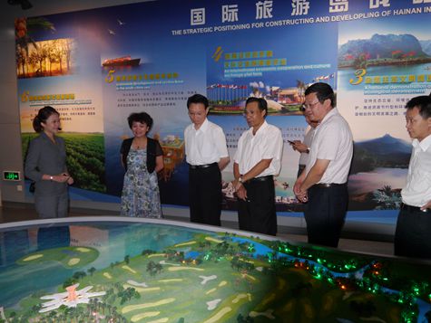 9月18日下午,江蘇省人民政府副省長(zhǎng)何權(quán)一行在海南省人民政府副省長(zhǎng)陳志榮和省住房和城鄉(xiāng)建設(shè)廳廳長(zhǎng)王志宏等領(lǐng)導(dǎo)的陪同下赴我館參觀。在參觀的過程中,何權(quán)副省長(zhǎng)對(duì)海南的歷史發(fā)展、建置沿革、生態(tài)環(huán)境和國(guó)際旅游島重點(diǎn)項(xiàng)目規(guī)劃建設(shè)情況等進(jìn)行詳細(xì)了解,并在360度環(huán)幕影院中親身感受海南國(guó)際旅游島的未來發(fā)展前景。