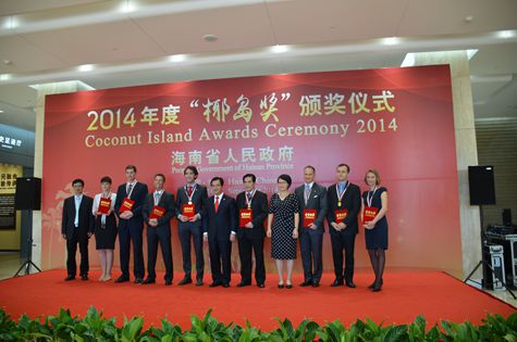 9月29日下午,海南省2014年度“椰島獎(jiǎng)”頒獎(jiǎng)儀式在海南省規(guī)劃展覽館舉行。獲得該項(xiàng)殊榮的8位外國專家,分別來自以色列、新加坡、法國、俄羅斯、烏克蘭、美國等國家,在商業(yè)咨詢、旅游、酒店、教育、醫(yī)療等行業(yè)中為國際旅游島建設(shè)起著積極作用。“椰島獎(jiǎng)”評選工作是我省外國專家服務(wù)與管理的一項(xiàng)重要工作,對鼓勵(lì)外國專家在瓊工作的積極性,增進(jìn)外國專家與海南的友誼和合作交流,起到了重要的促進(jìn)作用。