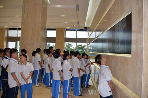 觸摸屏所展示的豐富信息無一不吸引著同學(xué)們的目光。通過講解員的引導(dǎo)和解說,同學(xué)們深入了解海南的建置沿革、資源概況及國際旅游島建設(shè)項(xiàng)目情況等,并認(rèn)真觀看了“大美海南”主題