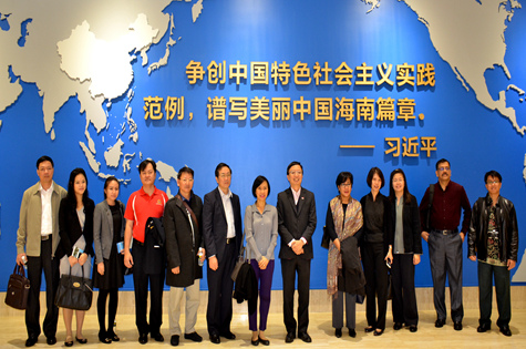 12月8日,東盟各國駐廣州總領(lǐng)事代表團(tuán)一行到我館參觀。詳細(xì)了解海南的人文、生態(tài)、交通、旅游及省域“多規(guī)合一”工作等的建設(shè)情況,對(duì)海南探索發(fā)展新的旅游產(chǎn)品尤為關(guān)注。觀看了《規(guī)劃海南》沙盤大模型演示及180度弧幕電影,對(duì)海南生態(tài)立省、經(jīng)濟(jì)特區(qū)、國際旅游島三大優(yōu)勢(shì)有了深刻體會(huì)。參觀結(jié)束后,總領(lǐng)事們紛紛在展館拍照留念。