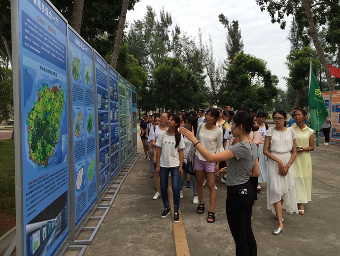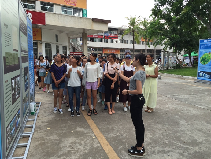 此次活動(dòng)將展館各展廳展示內(nèi)容進(jìn)行濃縮,精心制作了15塊展板,形成微縮展館在各校區(qū)內(nèi)進(jìn)行展示,并配備了講解員在現(xiàn)場(chǎng)進(jìn)行講解答疑。18日的活動(dòng)選擇在海南大學(xué)校區(qū)進(jìn)行,在校師生紛紛前來(lái)觀展,特別是大一新生更是分批組織前來(lái)進(jìn)行省情教育。
