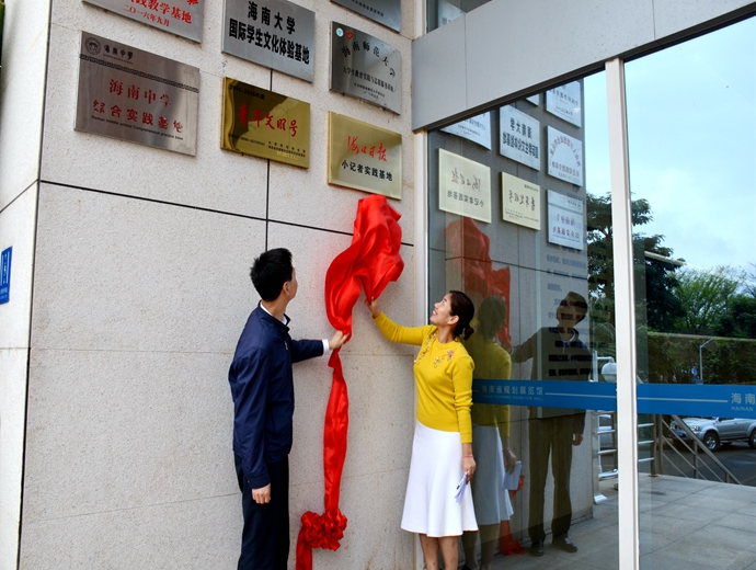 致辭結(jié)束后,雙方簽署共建"海口日?qǐng)?bào)小記者實(shí)踐基地"協(xié)議書(shū),并共同為"�?谌�?qǐng)?bào)小記者實(shí)踐基地"揭牌。