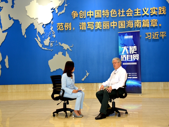 5月29日上午, 瑞士駐華大使戴尚賢一行到我館參觀。當天,海南廣播電視總臺《直通自貿(mào)港》欄目之《大使話自貿(mào)》特別策劃節(jié)目:面對面訪談瑞士駐華大使,在我館進行錄制。