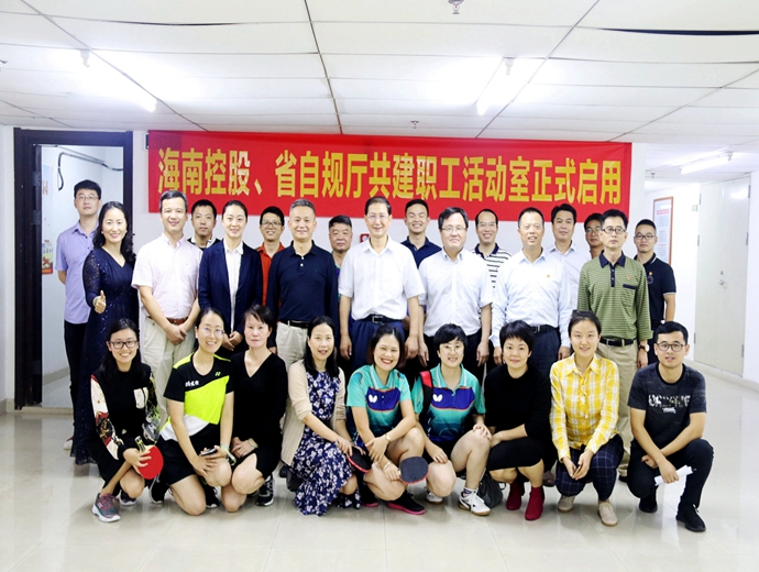 在中國共產(chǎn)黨十九屆四中全會(huì)勝利閉幕、海南加快推進(jìn)自貿(mào)區(qū)(港)建設(shè)之際,為進(jìn)一步深化“職工之家”建設(shè),竭誠服務(wù)職工,引領(lǐng)廣大職工加強(qiáng)體育鍛煉、增強(qiáng)身體素質(zhì),以更大的干勁投身海南自貿(mào)區(qū)(港)建設(shè),在海南控股與省自然資源和規(guī)劃廳兩家單位的共同努力下,會(huì)展樓地下室職工活動(dòng)室順利建成并投入使用。11月1日,公司工會(huì)舉行職工活動(dòng)室揭牌儀式,省自然資源和規(guī)劃廳黨組副書記、副廳長、省海洋局局長王利生,公司黨委副書記、總經(jīng)理李曉剛,公司黨委委員、紀(jì)委書記、工會(huì)主席卓基竹出席揭牌儀式。省自然資源和規(guī)劃廳機(jī)關(guān)黨委、省規(guī)劃展覽館、公司組織人事部、群眾工作部等有關(guān)部門負(fù)責(zé)人參加活動(dòng)。