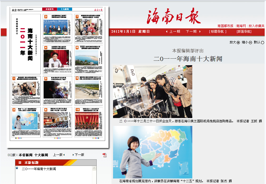 2011年4月16日,我接待了時(shí)任總書(shū)記胡錦濤同志。當(dāng)被告知總書(shū)記要來(lái)規(guī)劃館視察,我的內(nèi)心無(wú)比期待,又無(wú)比激動(dòng)。帶著這份神秘而緊張的心情,我每天都在認(rèn)真地準(zhǔn)備著講解詞,只盼望著這一天的到來(lái)。還記得那次在公交車上,我小聲朗讀著爛熟于心的講解詞,周圍的人用異樣的眼光看著我,而此時(shí)內(nèi)心的快樂(lè)卻只有我自己能懂。“這條短短40分鐘的參觀路線我一生都忘不了”。那年,我接待的照片,榮登了海南日?qǐng)?bào)“二〇一一年海南十大新聞”。