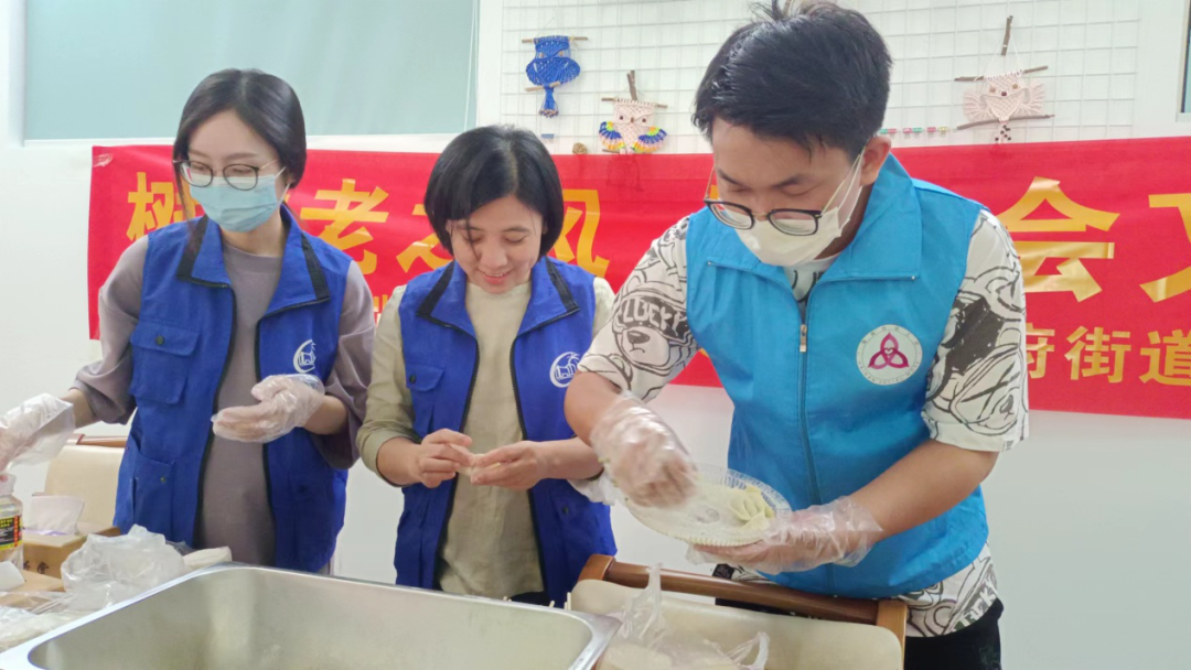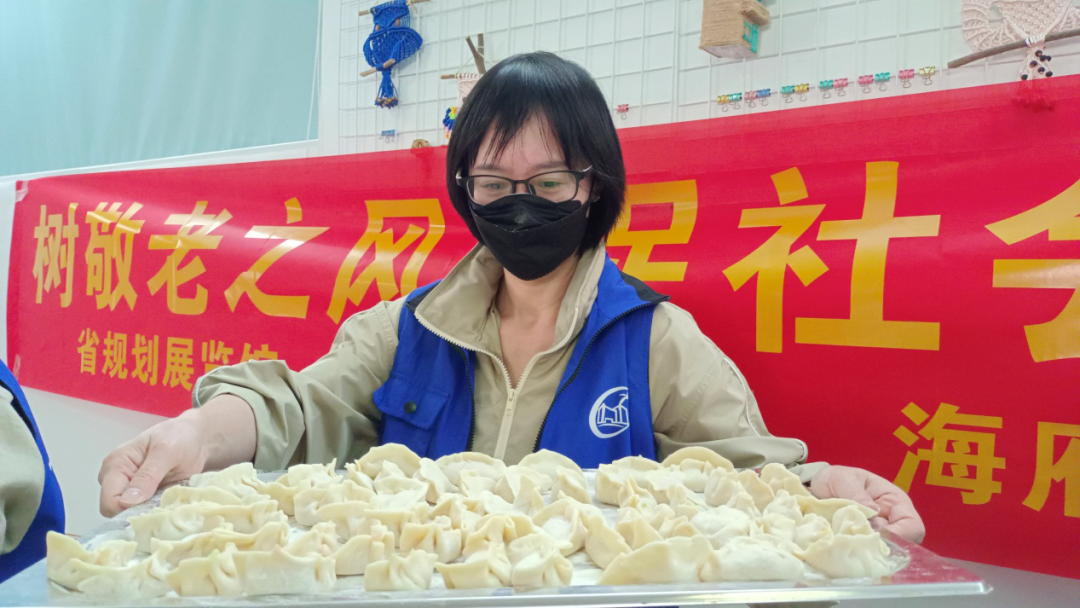 展館包餃子能手胡亞利正在現(xiàn)場(chǎng)教學(xué),示范包出漂亮的餃子來(lái)
