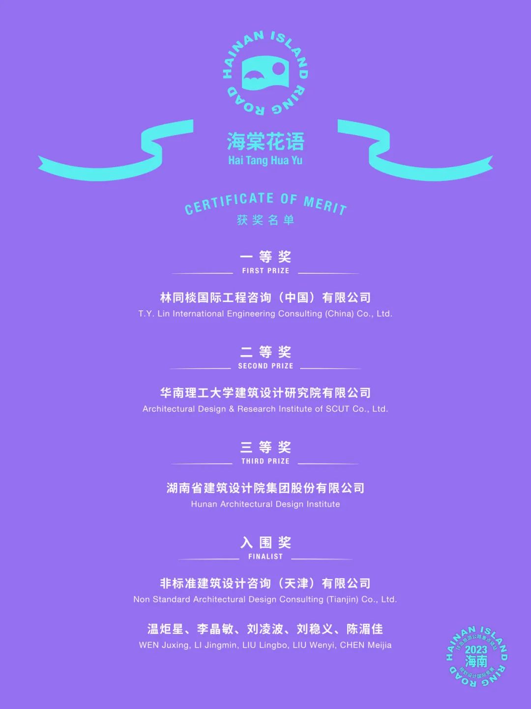 2023年10月10日,海南省自然資源和規(guī)劃廳在海口成功舉辦「海南2023年環(huán)島旅游公路重點(diǎn)驛站規(guī)劃設(shè)計(jì)國(guó)際競(jìng)賽」終審會(huì)與頒獎(jiǎng)儀式。經(jīng)過(guò)激烈角逐,分別產(chǎn)生文昌木蘭波光、儋州銀灘泛歌、三亞海棠花語(yǔ)3個(gè)驛站規(guī)劃設(shè)計(jì)國(guó)際競(jìng)賽的一、二、三等獎(jiǎng)以及入圍獎(jiǎng)!省自然資源和規(guī)劃廳、省規(guī)劃展覽館、文昌、儋州、三亞自然資源和規(guī)劃局的代表出席活動(dòng)。