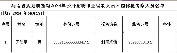 附件:海南省規(guī)劃展覽館2024年公開招聘事業(yè)編制人員入圍體檢考察人員名單