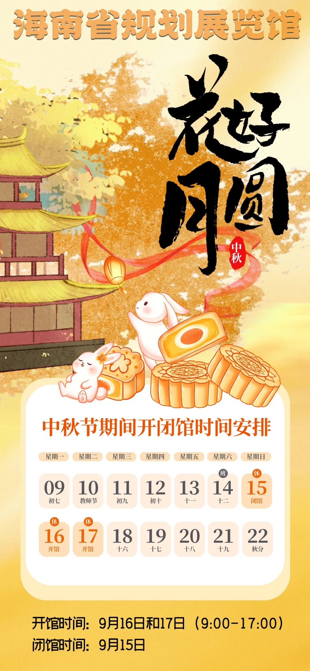 關于中秋節(jié)期間開閉館時間安排的通知