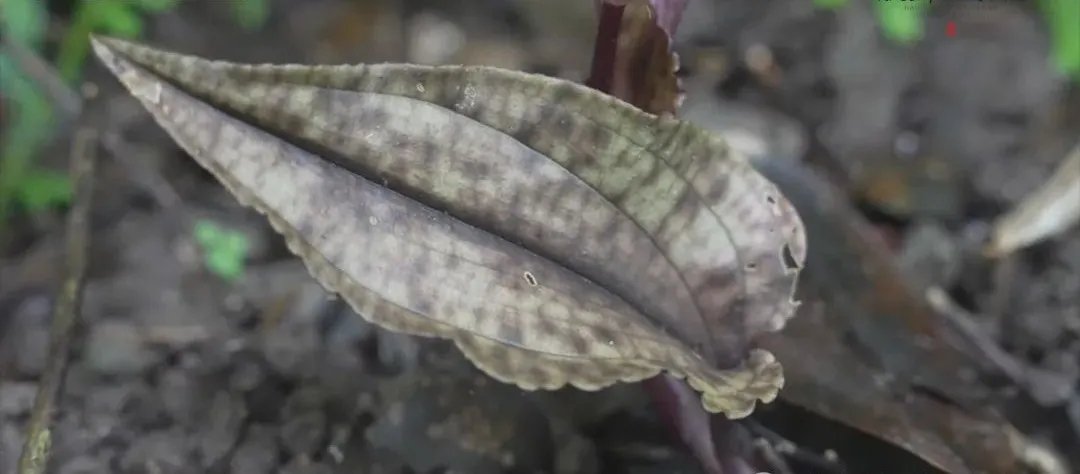 美麗云葉蘭的葉子非常有特色,邊緣是波浪形,5條非常明顯的葉脈,它的葉子并不像常規(guī)植物那樣是綠色的,而是偏黃褐色,葉片上有很多不規(guī)則的黑色斑點(diǎn),所以看起來(lái)就像爛了,但沒(méi)完全爛的落葉,與周邊的環(huán)境偽裝得特別好,如果不是開花,很難發(fā)現(xiàn)它的存在。