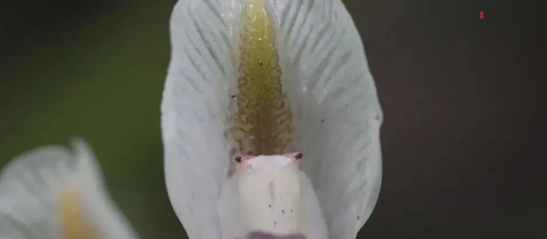 美麗云葉蘭的花看上去第一感覺(jué)不像是一個(gè)正常蘭科植物花的樣子,反而更像是某種姜科植物的花,它的唇瓣特化得像一個(gè)圓形的廣告牌,中間帶顏色的部分就是它的蜜導(dǎo)。
