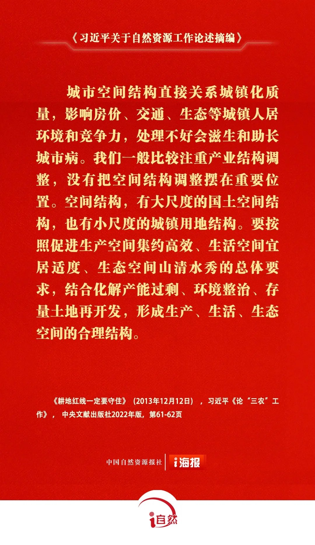 近日,《習(xí)近平關(guān)于自然資源工作論述摘編》(以下簡(jiǎn)稱《論述摘編》)出版發(fā)行,《論述摘編》全面系統(tǒng)反映了習(xí)近平總書記對(duì)新時(shí)代自然資源工作進(jìn)行的深邃思考、作出的重大部署,深刻回答了推進(jìn)新時(shí)代自然資源工作的一系列方向性、根本性問題,是深入學(xué)習(xí)領(lǐng)會(huì)習(xí)近平總書記關(guān)于自然資源工作的重要論述的權(quán)威教材。