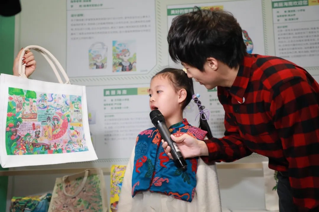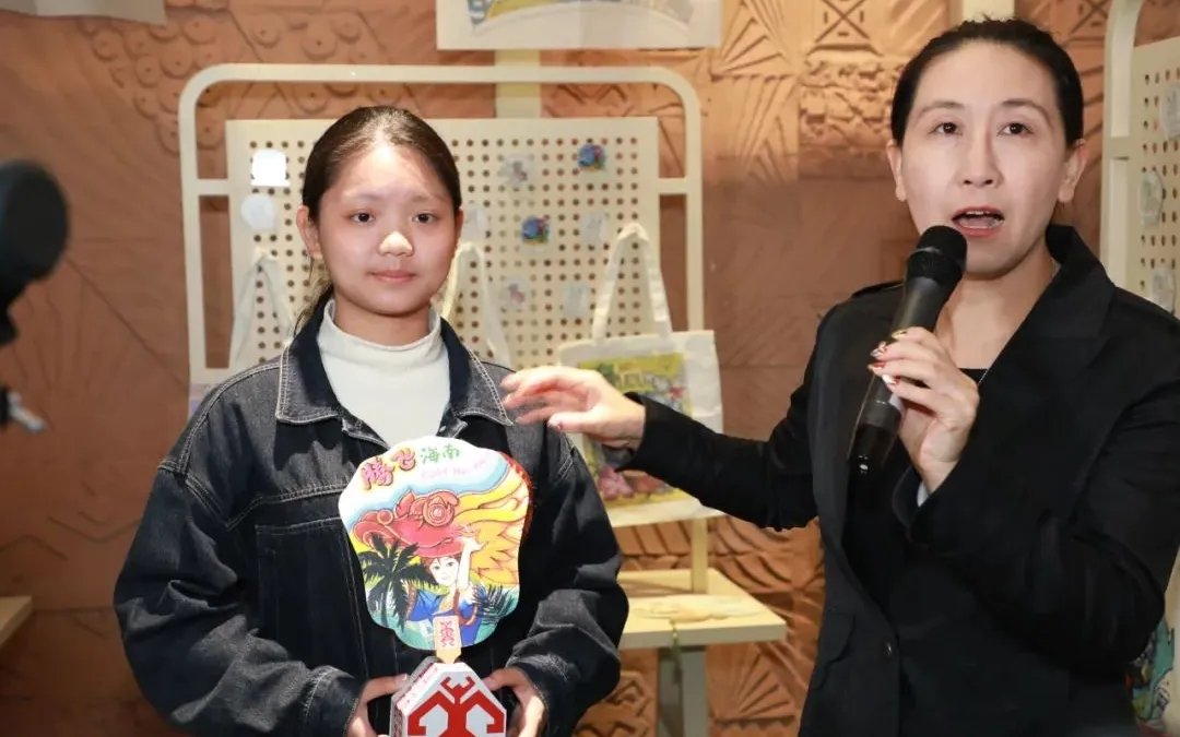 工作人員引導大家參觀 “迎新春 展成果 海南省歷年自然資源科普成果展” 展廳。清華大學博士、海南大學國際傳播與藝術學院設計系主任于曉華老師隨行解讀文創(chuàng)大賽獲獎作品。這些作品均出自海南中小學生之手,涵蓋杯子、扇子、購物袋等。于曉華老師與孩子們積極互動,針對文創(chuàng)作品的創(chuàng)意、美術繪畫與文創(chuàng)的關聯(lián)等方面進行交流,不僅提升了孩子們的文創(chuàng)技藝,還向大眾普及了文創(chuàng)知識。展館講解員還引領大家巡館,深入探尋海南自然資源和規(guī)劃知識,以及觀看機關黨建和業(yè)務工作深度融合實踐案例等。