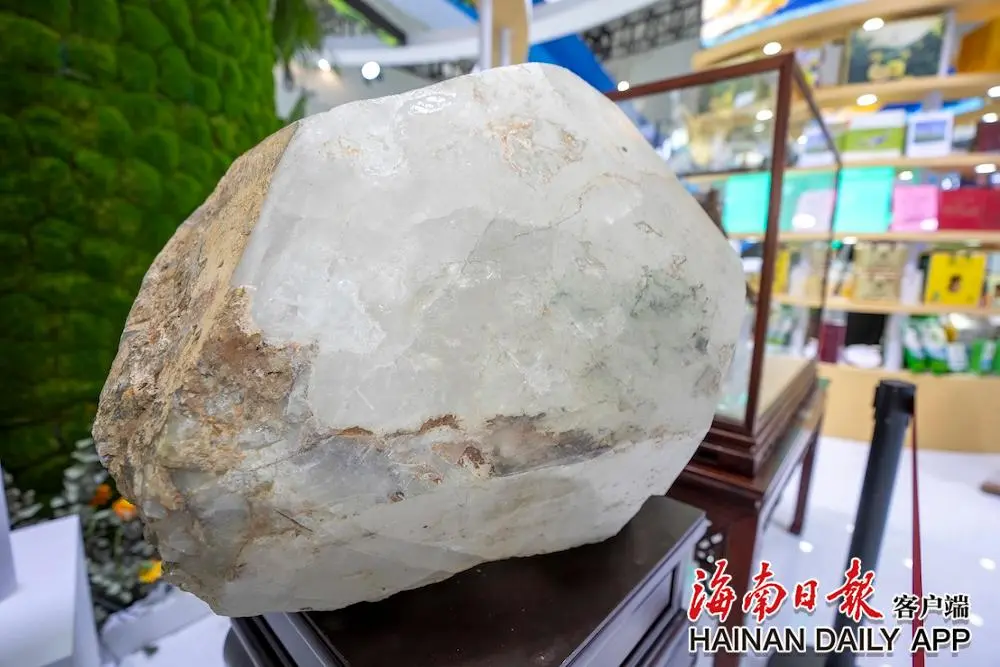 4月15日,在第五屆中國(guó)國(guó)際消費(fèi)品博覽會(huì)海南館鎮(zhèn)島之寶展區(qū),重達(dá)600斤的屯昌羊角嶺單晶體水晶首次亮相,尤為引人關(guān)注。 4月14日,在中國(guó)國(guó)際消費(fèi)品博覽會(huì)海南館,來(lái)自屯昌的羊角嶺水晶。海南日?qǐng)?bào)全媒體記者 李天平 攝 這顆水晶源自海南屯昌羊角嶺水晶礦,從...