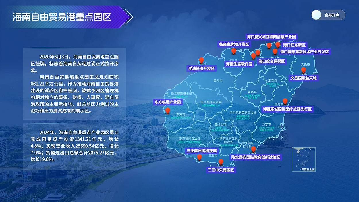 初步形成以四大主導(dǎo)產(chǎn)業(yè)為“主力軍”,南繁、深海、航天產(chǎn)業(yè)為內(nèi)生動力,13個自貿(mào)港重點(diǎn)園區(qū)為“主戰(zhàn)場”的現(xiàn)代化產(chǎn)業(yè)體系,統(tǒng)籌布局旅游業(yè)空間、現(xiàn)代服務(wù)業(yè)空間、高新技術(shù)產(chǎn)業(yè)空間、熱帶特色高效農(nóng)業(yè)空間。